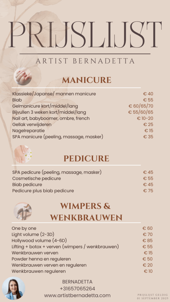 Ik nodig je uit voor professionele verzorgingsbehandelingen die ervoor zorgen dat jouw handen en voeten er elke dag verzorgd, stijlvol en prachtig uitzien.